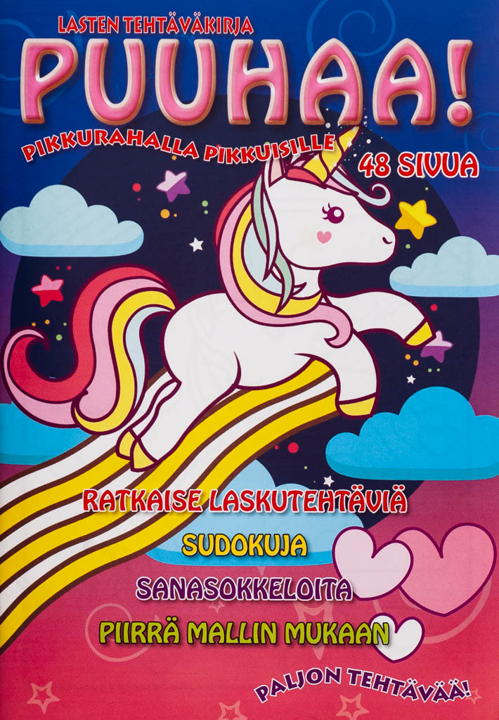 Puuhaa 48-sivuinen puuha- ja tehtäväkirja lapsille. Sanasokkeloita, sudokuita, laskutehtäviä, erovaisuuksia ja mallin mukaan piirto tehtäviä. Takaisin Kysy lisätietoja Nimi Sähköpostiosoite Sähköpostiviesti 14 + 2 = Lähetä